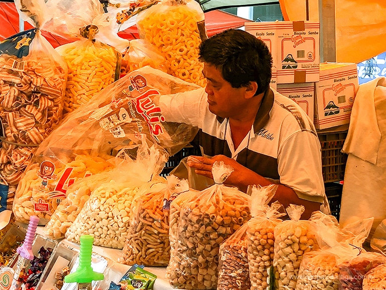 Um lugar que também gosto de freqüentar e comprar, são as lojas que vendem temperos(especiarias), doces, salgados…tudo (ou quase tudo) por peso também. Há pouco tempo, estive numa delas, no centro de Guarulhos, e comprei alguns gramas de salgadinho de alho crocante, pesado na hora…