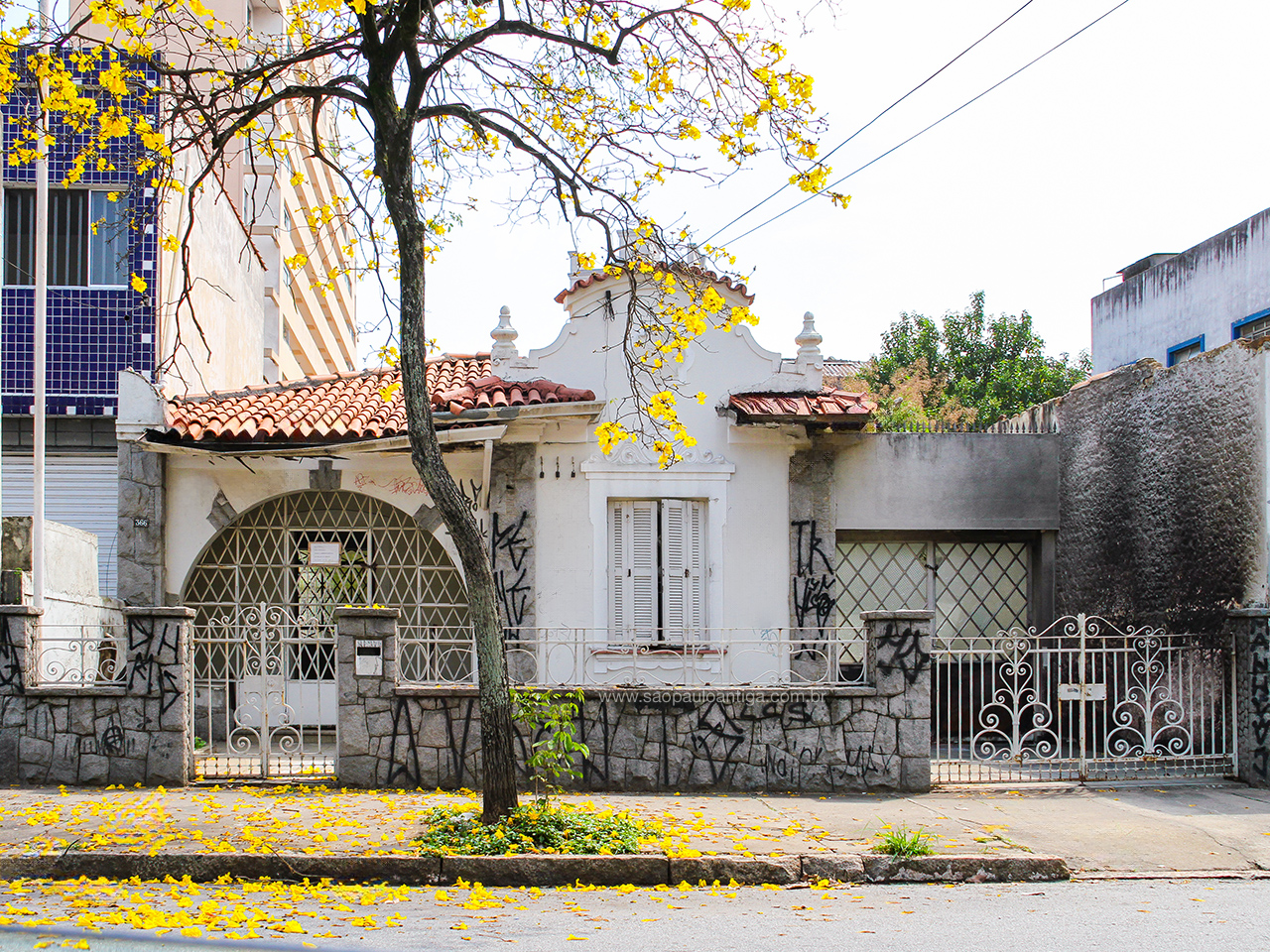 As flores amarelas da árvore que está na calçada da residência mostravam uma vida que o imóvel não tinha mais. Uma rápida visita no Google Street View em 2011, quando a casa ainda era habitada, mostra que a deterioração só vinha aumentado desde que seus moradores deixaram a residência.