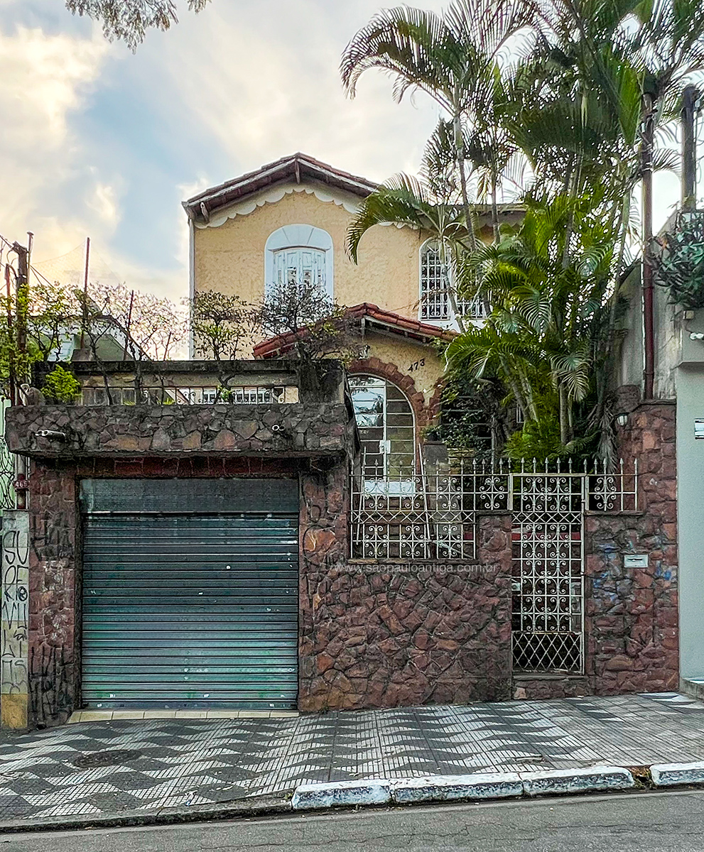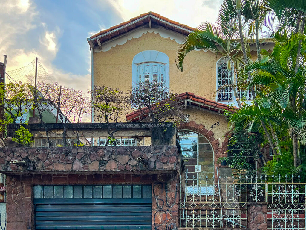 Localizada na rua Vichy, parte do bairro que é conhecido como Vila Baruel, trata-se de uma casa antiga muito interessante com uma arquitetura bastante charmosa, o que a destaca entre as demais residências vizinhas. Gosto muito dessa entrada feita com pedras e da calçada, feito com o tradicional piso com o mapa do Estado de São Paulo. O portão de entrada aparentemente é original e quando aumentaram a altura do gradil tiveram a sensibilidade de usar o mesmo padrão artístico.