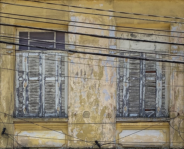Outros detalhes que chamam a atenção são o pé direito alto da casa de cima, fácil de ser observado mesmo por fora através das dimensões da janela e o posicionamento do telhado, e o gradil do portão que ainda é original.