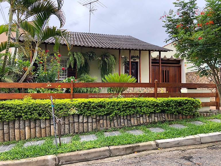 Notem que já são mais de 30 anos isso e nunca encontrei esse lar maravilhoso em outra condição que não fosse essa da foto, perfeita e repleta de verde. Realmente ela é de encher os olhos por vários outros aspectos também, como sua fachada antiga suave e simples mas bastante charmosa, o portão de madeira da garagem e, por fim a cerca de madeira (não vou chamar de muro) que divide a propriedade com a calçada.