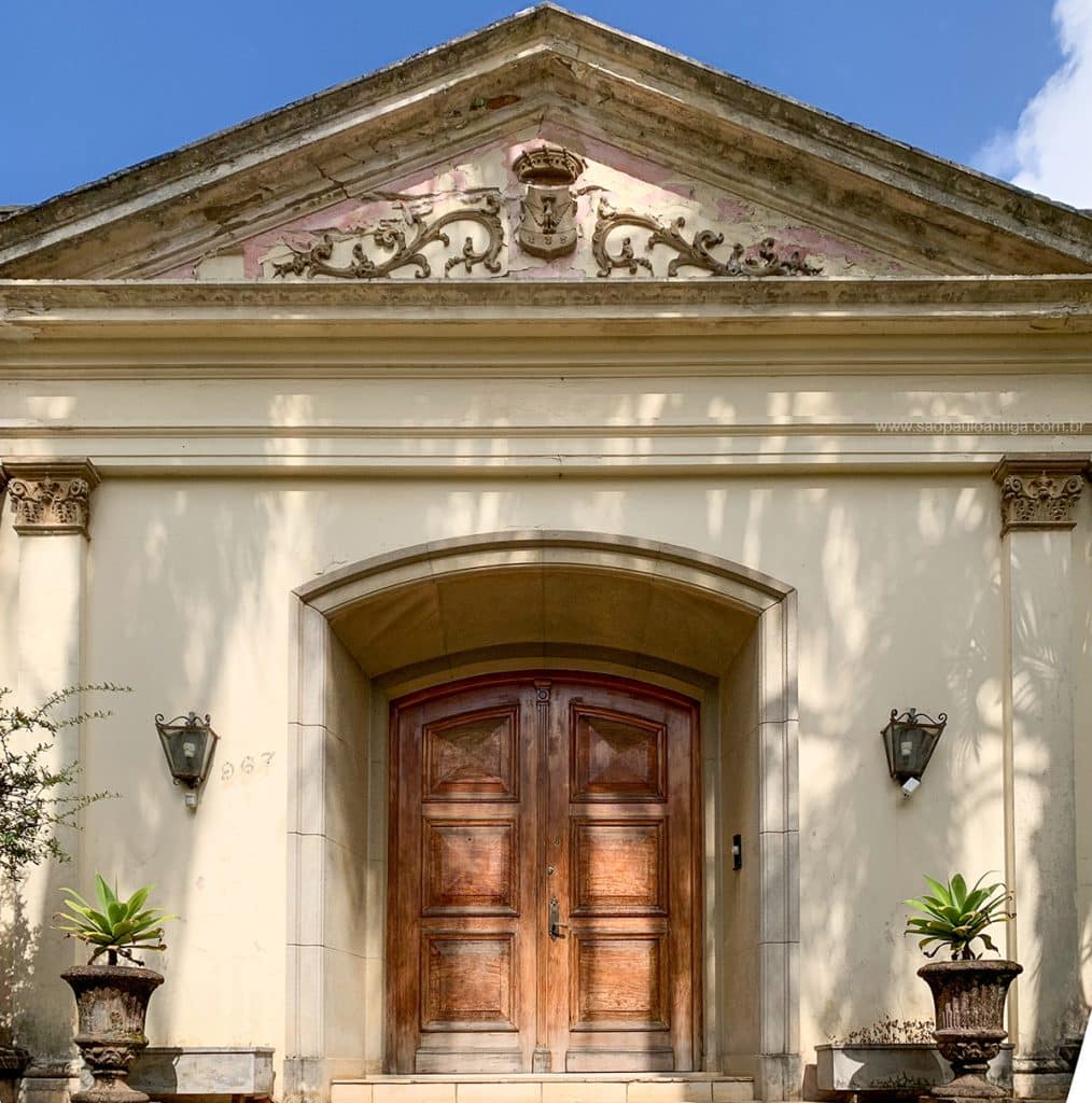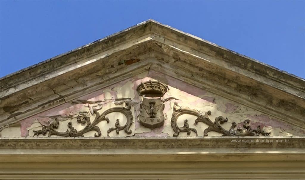 No alto da fachada encontra-se este brasão (foto acima) que mais parece um brasão de alguma entidade do que um familiar, entretanto não conseguimos identificar o que viria a representar. Se você souber, deixe um comentário.