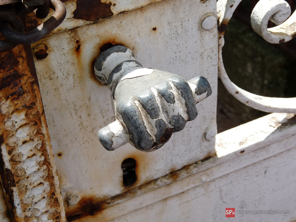 Um detalhe muito interessante está na maçaneta do portão da casa, que é uma mão fechada, como mostra a fotografia a seguir.