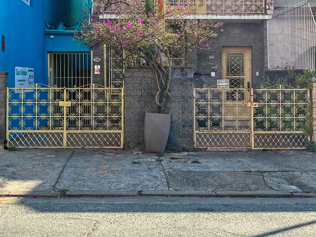 É o caso dessas duas charmosas residências antigas, construídas na metade do século 20, localizadas na rua Pimenta Bueno no bairro paulistano do Belenzinho, zona leste de São Paulo. Observem que neste caso são duas casas indepententes, sendo uma maior que ocupa um fração do térreo e o andar superior, e outra do lado esquerdo, menor, que fica (aparentemente) somente no térreo.