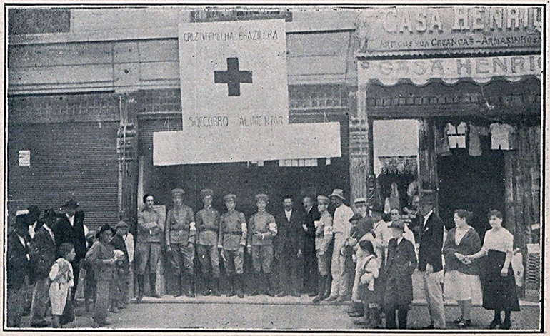 A foto abaixo mostra um dos postos da Cruz Vermelha em São Paulo, localizado na Rua Direita, onde voluntários do Mappin Stores e oficiais distribuem itens de primeira necessidade aos carentes: