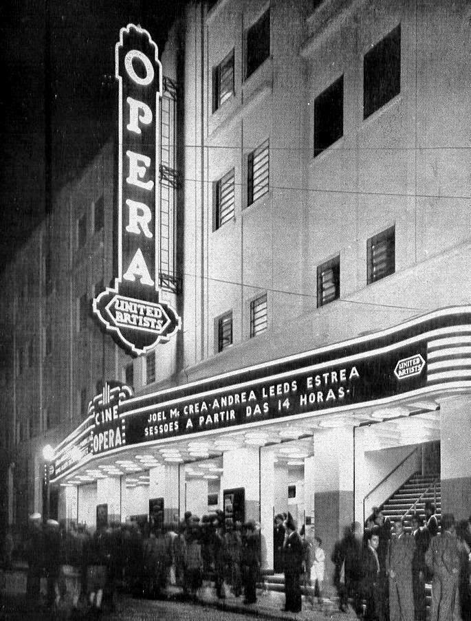 Inaugurado em 1939, o Cine Ópera foi um dos importantes cinemas do chamado “Centro Novo“. Construído na rua Dom José de Barros, onde anteriormente existia o lendário Teatro Apolo, seu projeto foi de autoria de Antonio Tadeu Giuzio, conhecido por projetar outros cinemas na capital paulista, como o Cine Jóia e o Cine Rex (Teatro Zaccaro).