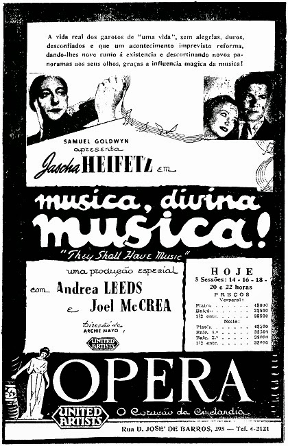 Que trágico fim para um cinema que teve uma vida tão efêmera, menos de 20 anos! Gostei do anúncio do filme — Música, divina música — com o Jascha Heifetz, um dos maiores violinistas do século XX, do qual tenho algumas gravações muito bonitas.