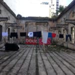 Nesta semana visitamos mais uma vez o antigo prédio das Classes Laboriosas e notamos que o local foi coberto com uma tela de proteção e cercado por malotões.