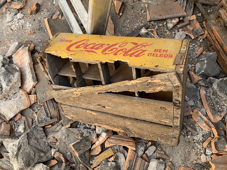 3) Havia muita tranqueira guardada no telhado. Mas o que mais me chamou a atenção foi este engradado de madeira da Coca-Cola que estava por lá. Fico pensando porque meu avô ou minha avó guardaram isso lá, uma pena que ela apodreceu senão seria uma peça de decoração interessante.