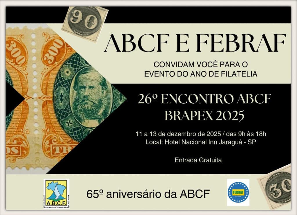 O 26º Encontro ABCF de Filatelia e a Exposição Filatélica Brasileira – BRAPEX 2025 será gratuito e reunirá no Hotel Nacional Inn Jaraguá colecionadores de todo o Brasil. Organizado pela Associação Brasileira de Comerciantes Filatélicos (ABCF) em conjunto da Federação Brasileira de Filatelia (FEBRAF), o evento contará com uma exposição competitiva nacional, com mais 100 painéis expostos por filatelistas. As coleções serão avaliadas por uma comissão julgadora, com jurados de São Paulo, Minas Gerais e Rio de Janeiro.