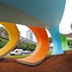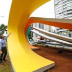 Considerada como uma das mais importantes obras da artista plástica Tomie Ohtake (*1913 +2015), o Monumento aos 80 anos da Imigração Japonesa foi entregue completamente restaurado pela Prefeitura de São Paulo.