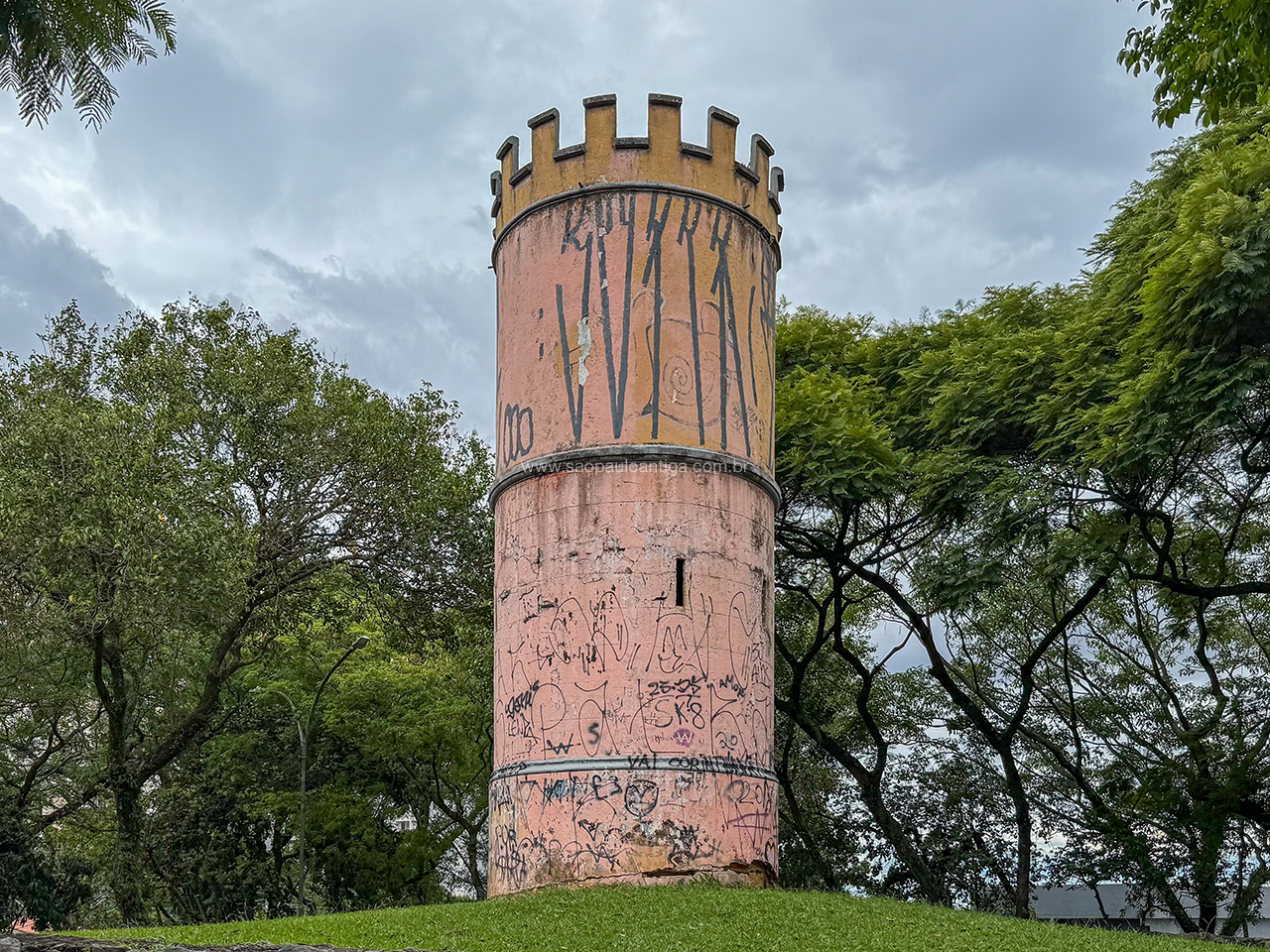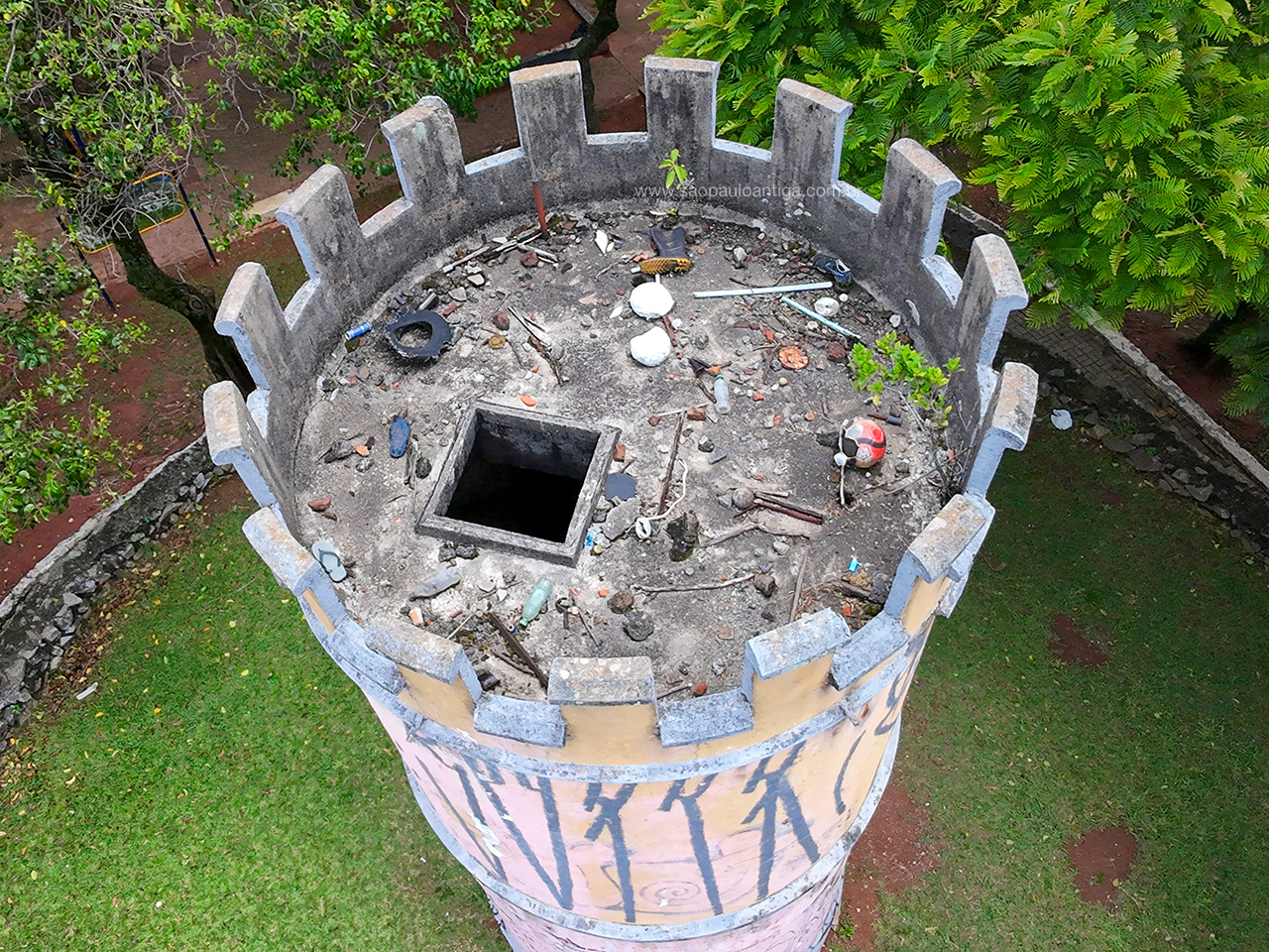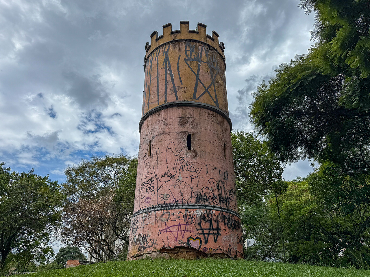 NOTA: a última foto desta galeria é uma sugestão feita por inteligência artificial mostrando como poderia ficar a caixa d’água depois de restaurada.
