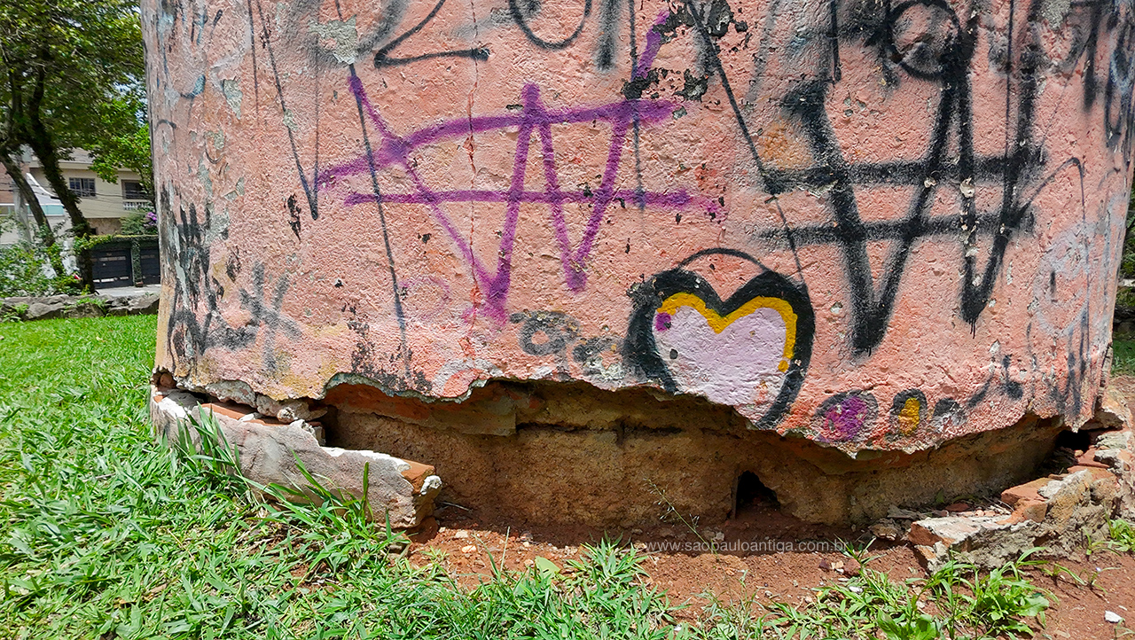 Essa enorme fissura na parte inferior deixou moradores do entorno e frequentadores da praça onde está a caixa d’água assustados com a possibilidade de um desabamento. Surgiu também um boato na região de que a estrutura seria demolida, mas não encontrei em conversas com funcionários da subprefeitura de Vila Prudente nada que confirmasse alguma ação neste sentido.