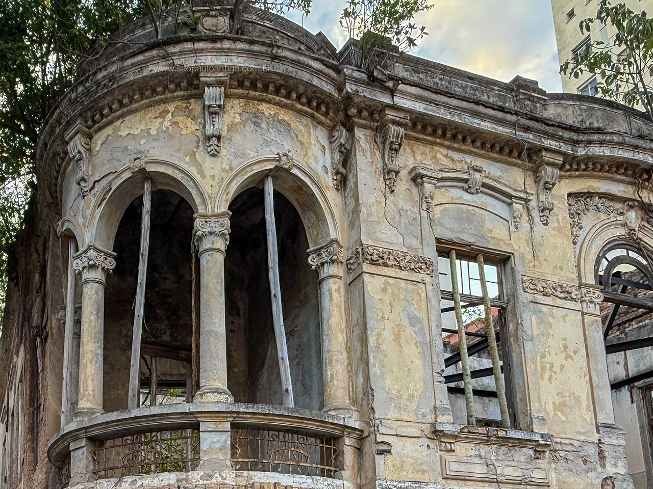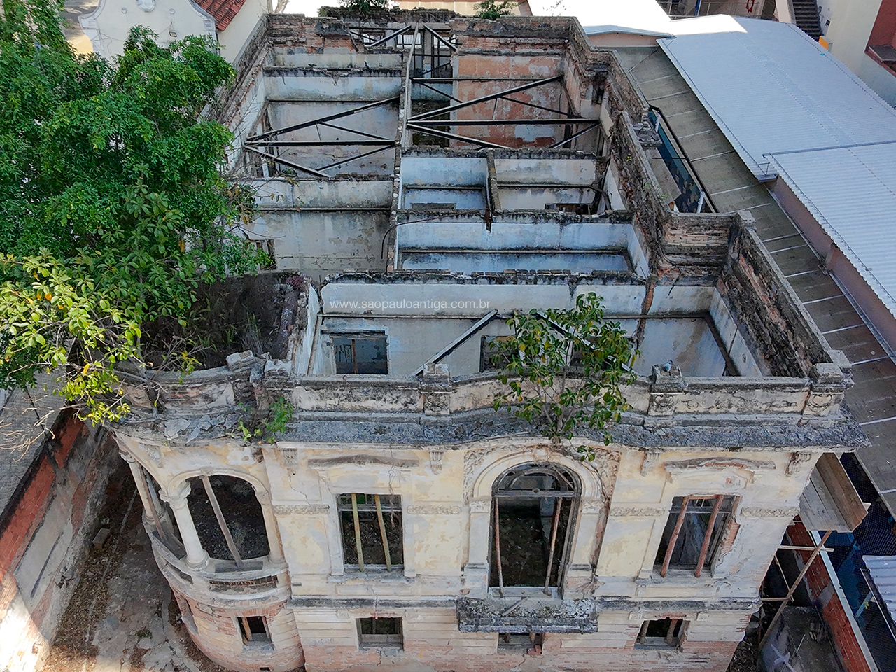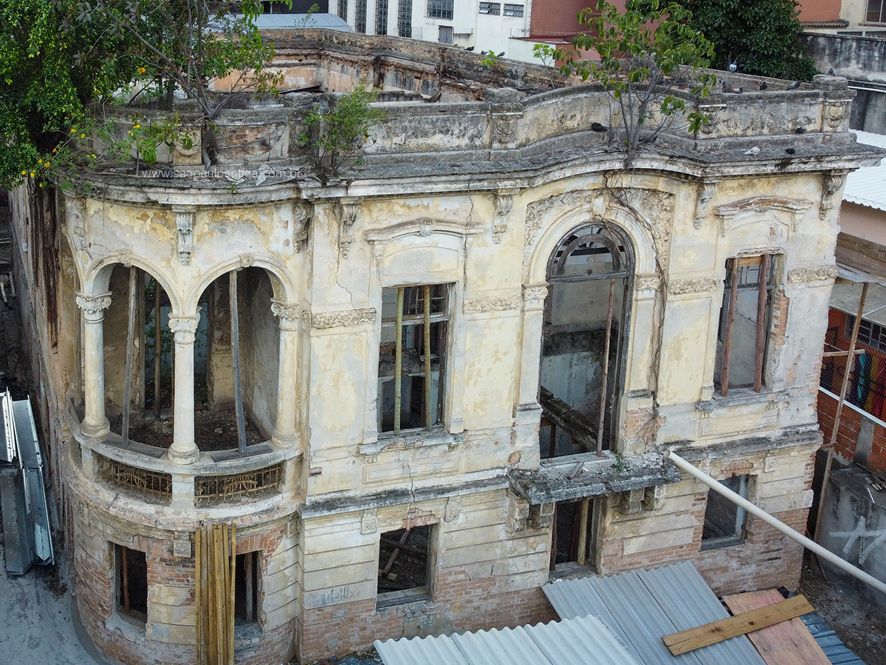 Ao longo de pouco mais de quatro décadas em total negligência, o cenário do que outrora foi uma luxuosa moradia da elite paulistana se transfomou em uma construção em ruínas. Primeiro caiu o forro, depois o madeiramento e o telhado, deixando-o desprotegido de intempéries.