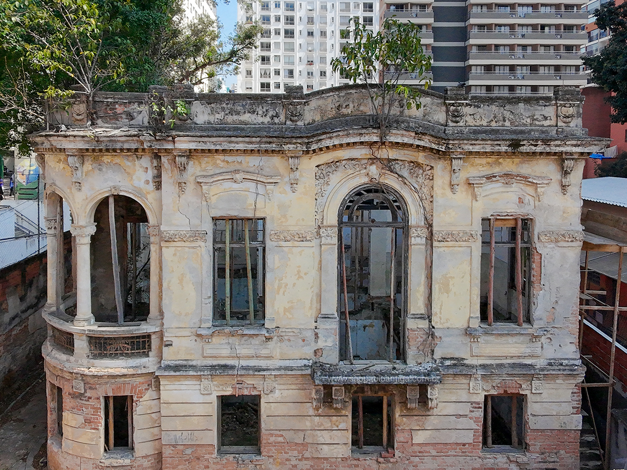 Quem já foi alguma vez até a Praça Franklin Roosevelt, na região central de São Paulo, possivelmente já notou um belo palacete, infelizmente em ruínas, escondido atrás de um muro. Caso você nunca tenha ido até lá, esta é a imagem que você veria: