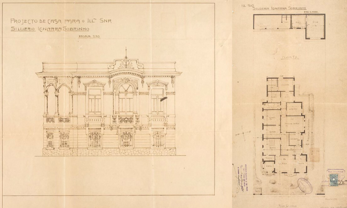 As plantas do projeto do palacete, autoria de Julio Micheli