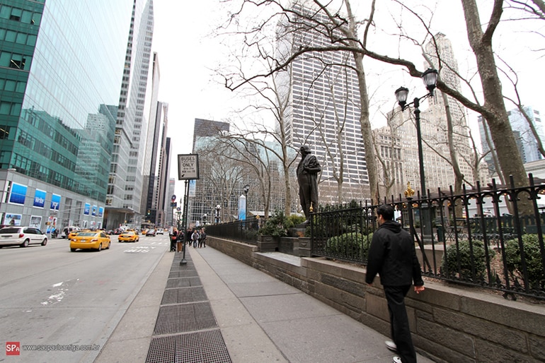 Estive lá e vi a estátua. O Bryant Park é um local, no qual acontecem vários eventos culturais.