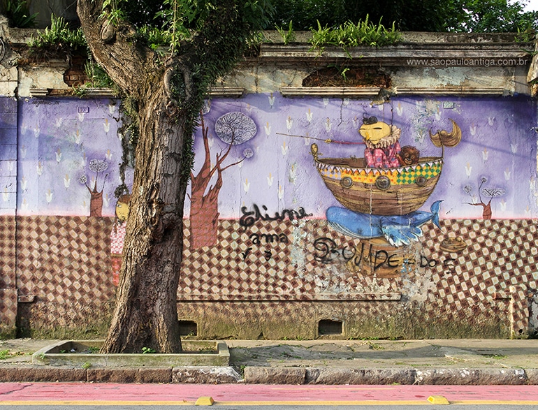 Na Rua Cesário Ramalho nos números 801 a 809 um belo trabalho da famosa dupla brasileira OSGEMEOS resiste lindamente há 16 anos.