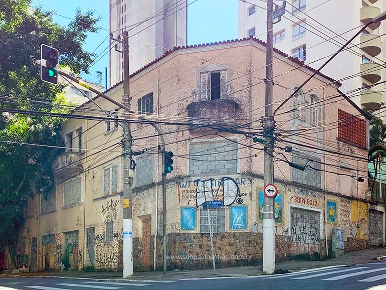 Localizado na Rua Otávio Nébias esquina com a Rua Maria Figueiredo, na região do Paraíso, o pequeno edifício da imagem acima é uma construção graciosa.