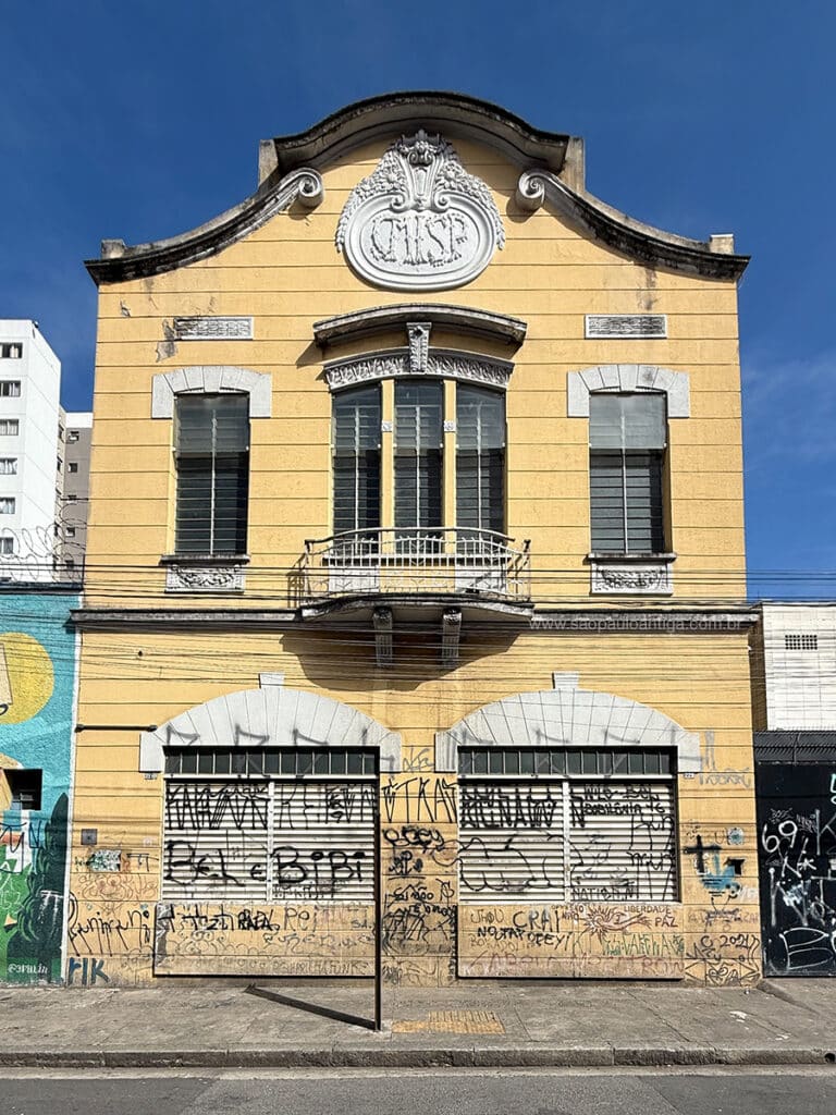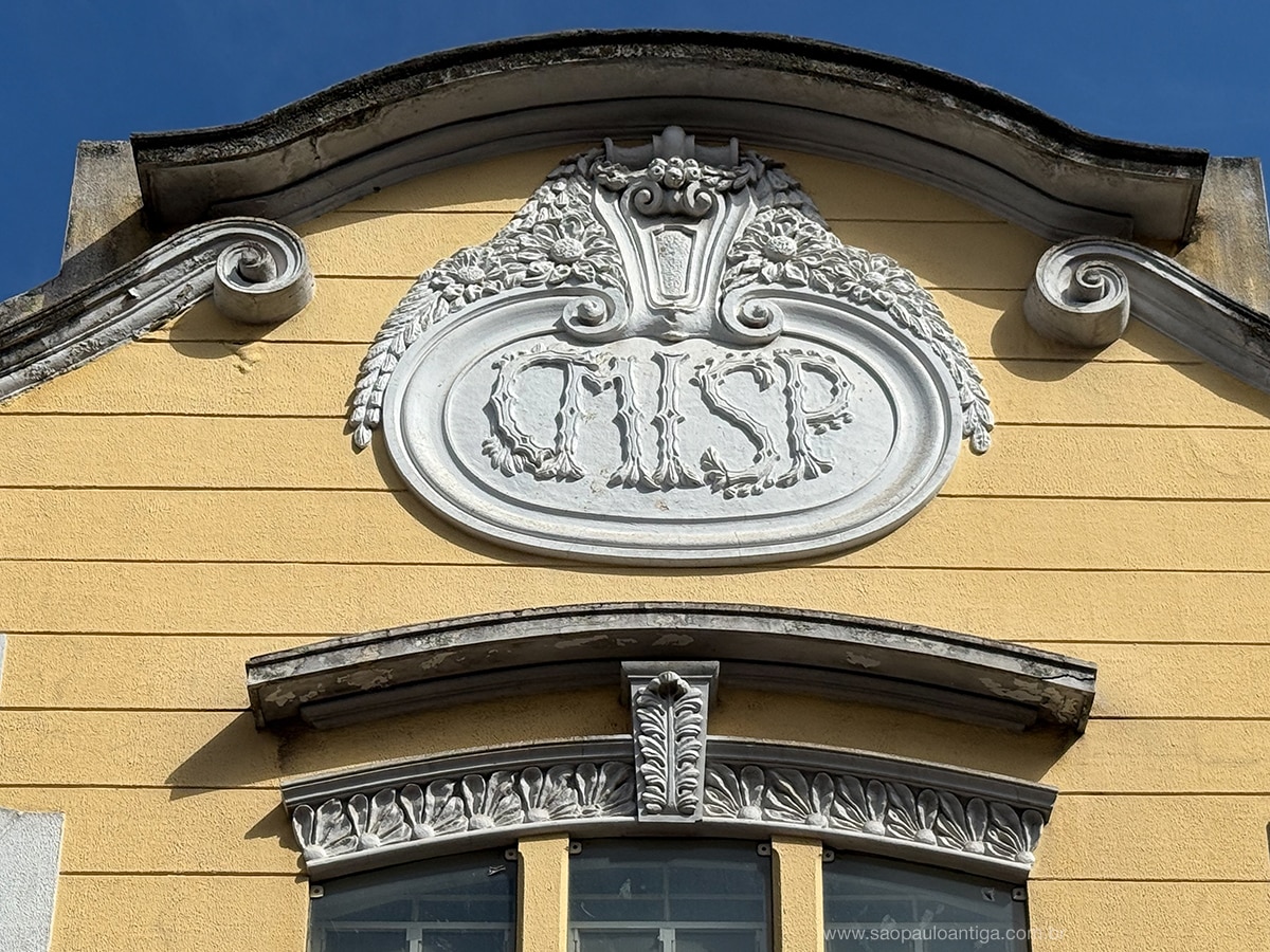 Embora tenha sofrido algumas alterações substanciais na fachada, tais como nas janelas do andar superior e nas antigas portas comerciais do térreo, transformadas em janelas, o imóvel ainda mantém preservada sua fachada e, principalmente, seu belo frontispício, onde encontramos a inscrição abaixo, onde se lê CMISP. Mas o que viria a ser esta sigla ?