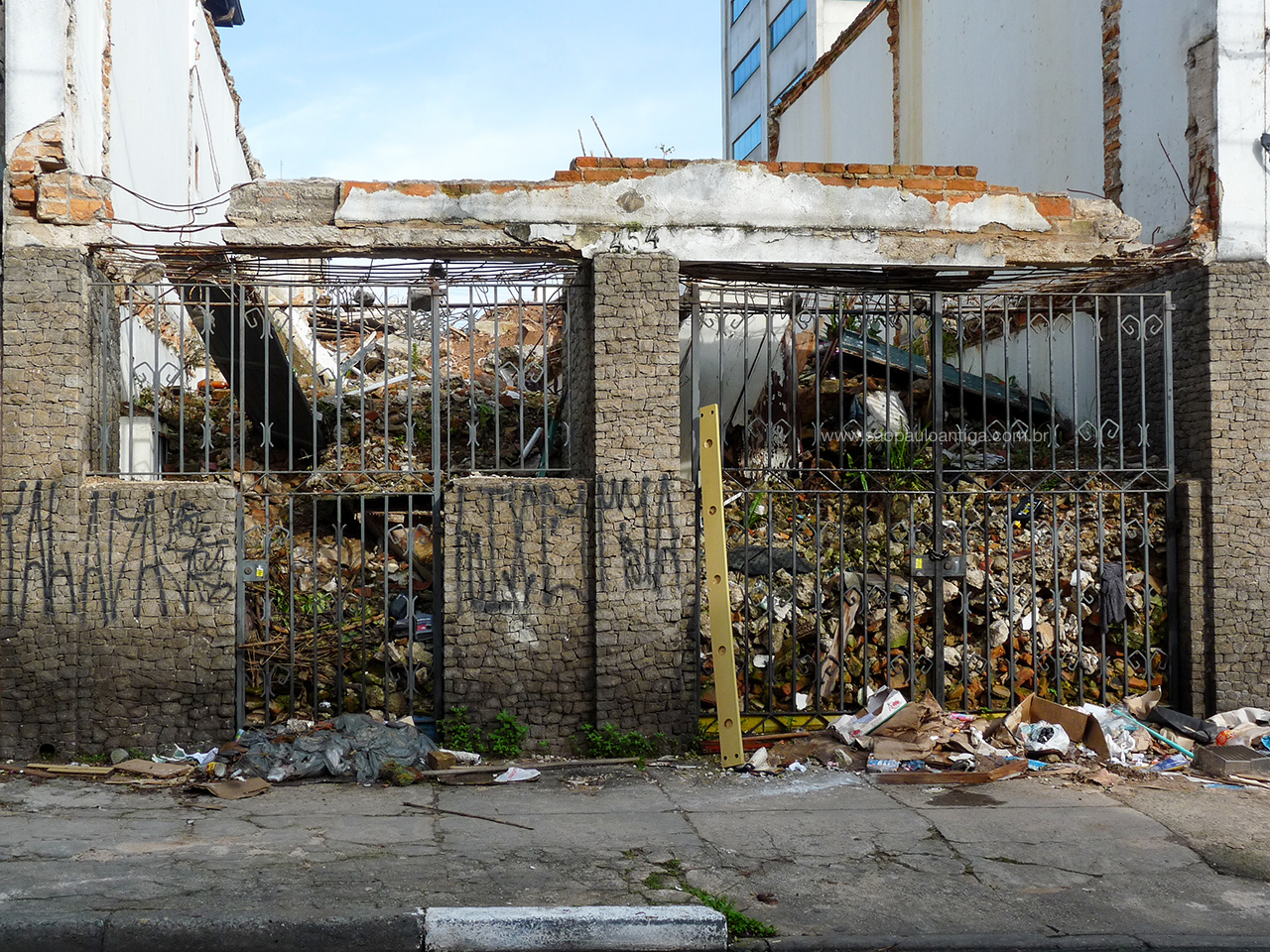 Nada restou da bela casa que havia neste terreno, além de muita sujeira e entulho. O site São Paulo Antiga recebeu a denúncia deste local de vizinhos que não aguentavam mais ver este acumulo de lixo e entulho ao lado de suas casas, frutos de uma demolição ocorrida em 2008.