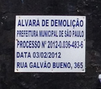 Na verdade o alerta de que a casa será demolida muito em breve foi fácil de notar. Fixado em seu muro, do lado esquerdo, o imóvel já exibe um alvará de demolição de Prefeitura do Município de São Paulo.