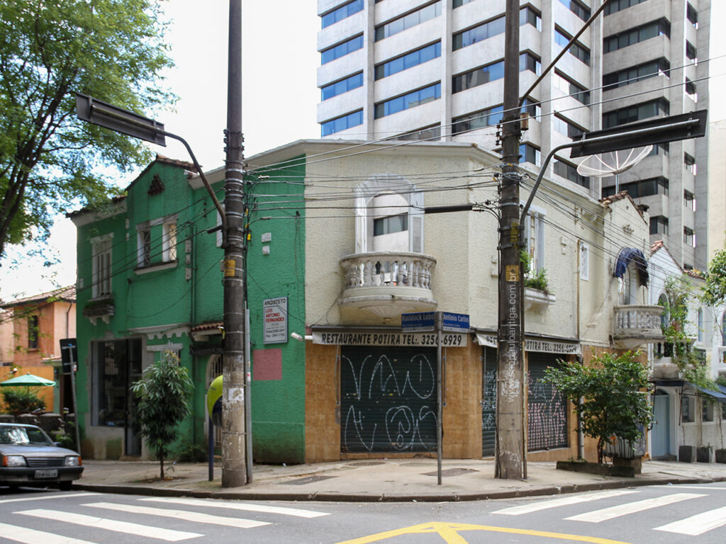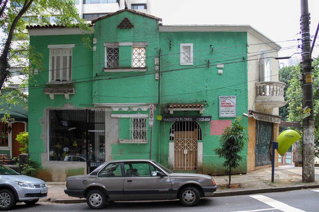 Localizado exatamente na esquina das ruas Haddock Lobo e Antônio Carlos, região de Cerqueira César, esse amplo sobrado de uso misto foi vendido na época em que eu fotografei, no distante ano já de 2012. Chegou a ficar vazio e abandonado por alguns anos e em 2014 foi reformado parcialmente para voltar a funcionar como estabelecimento comercial.