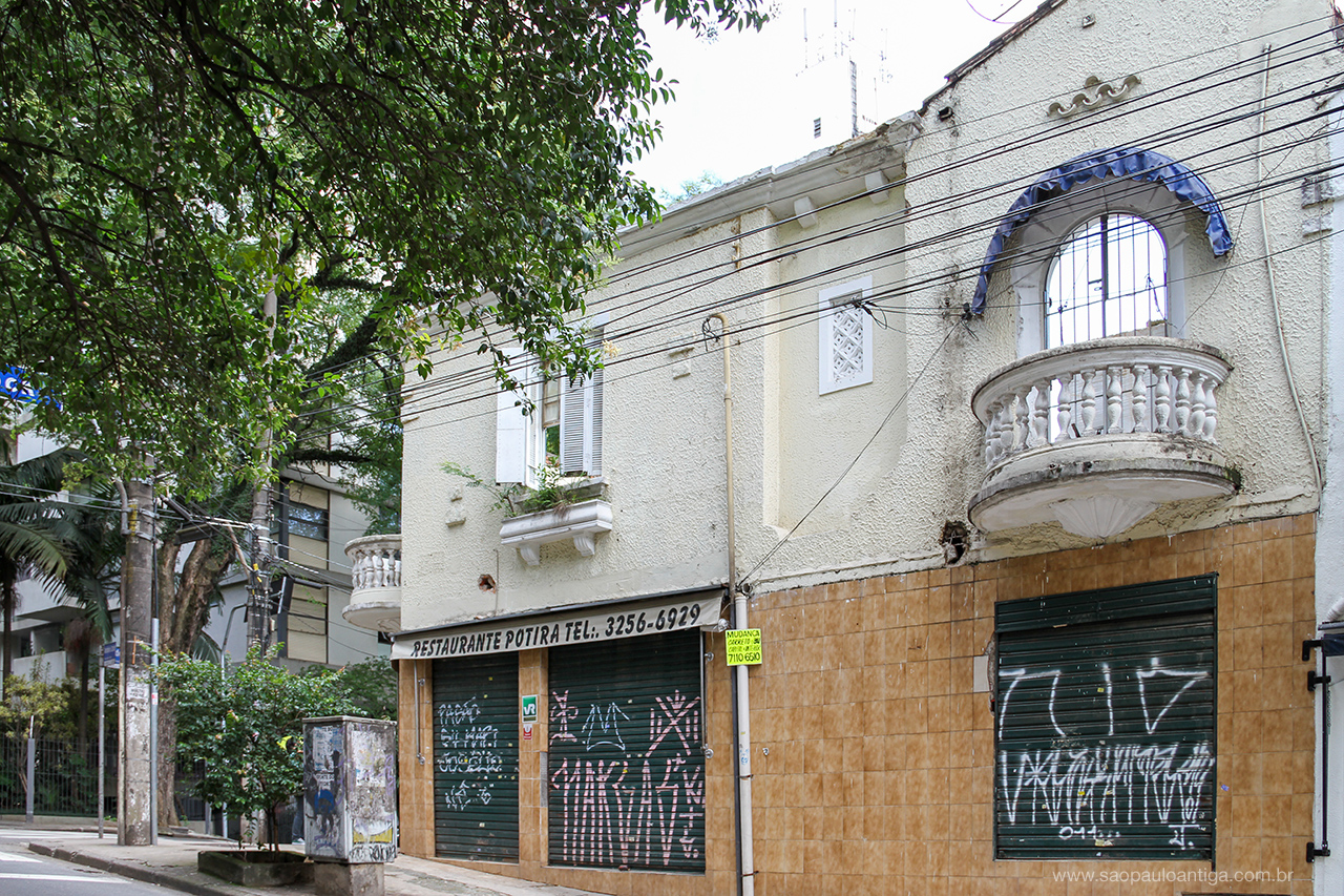 Localizado exatamente na esquina das ruas Haddock Lobo e Antônio Carlos, região de Cerqueira César, esse amplo sobrado de uso misto foi vendido na época em que eu fotografei, no distante ano já de 2012. Chegou a ficar vazio e abandonado por alguns anos e em 2014 foi reformado parcialmente para voltar a funcionar como estabelecimento comercial.