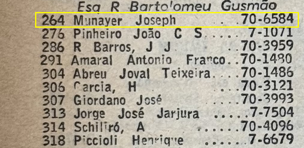 De acordo com IPTUs antigos e com a lista telefônica de São Paulo para o ano de 1961, o velho sobrado foi residência do imigrante libanês Joseph Munayer. Apesar de extensa pesquisa não encontrei muita coisa sobre ele, exceto no Diário Oficial da União, de 13 de fevereiro de 1957, onde foi publicada a sua naturalização como cidadão brasileiro.