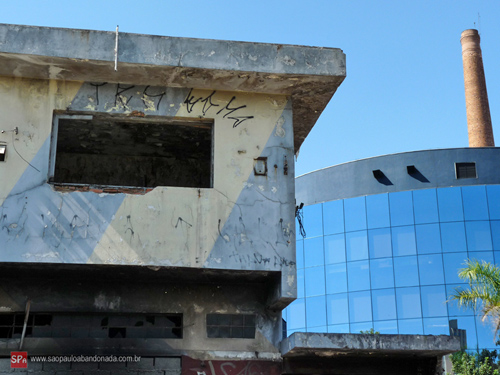 O imóvel completamente sujo e abandonado contrasta e muito com o moderníssimo prédio ao fundo do Centro Cultural Adamastor, da prefeitura de Guarulhos, este o grande pólo cultural da cidade vizinha de São Paulo.