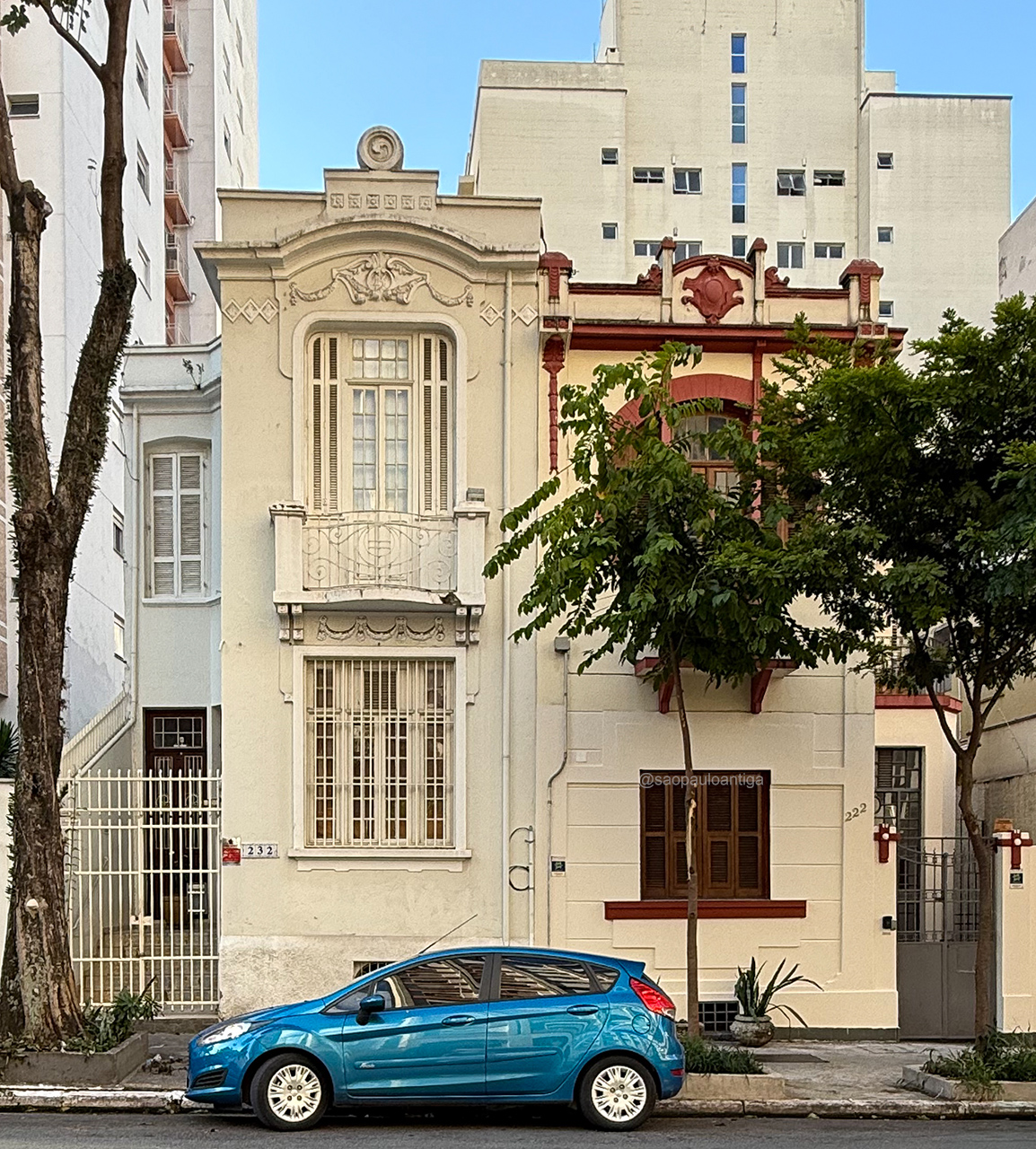 Abaixo mais duas imagens da residência do número 222, em estilo eclético com alguns traços que remetem ao art déco, e outra de sua vizinha do número 232: