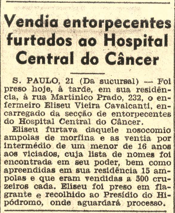 Abaixo o recorte sobre o caso, veiculado no jornal santista “A Tribuna”. Curiosamente ele foi levado para o presídio da rua do Hipódromo, cuja história já contei por aqui.