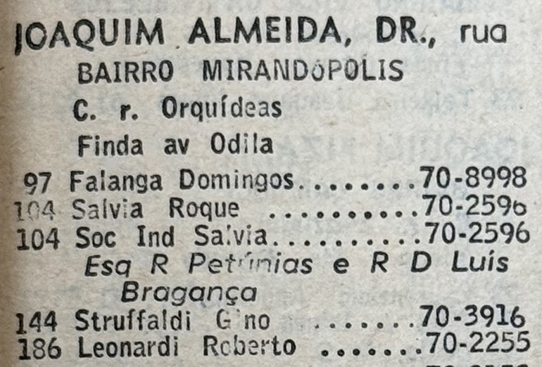 Abaixo o trecho da lista telefônica de assinantes de São Paulo do ano de 1963, onde é possível observar o número telefônico da Salvia naquele ano. A título de curiosidade na mesma lista está o número telefônico de Gino Struffaldi, valoroso combatente da Revolução Constitucionalista de 1932 e que residia na mesma rua da empresa.