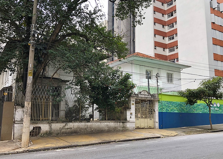 Estão por lá o portão de entrada original em estilo art noveau, os detalhes ornamentais sobre o portão, janelas, portas, vitrais e até o acabamento externo que deixa os blocos aparentes. A edícula que aparece no fundo da ilustração de 1925 também permanece.